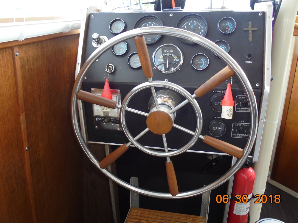 Flybridge wheel. (I removed and sold mine.) It was supposed to be a temporary deal, until I got another wheel, but I like it so... Been on two of my homemade boats so far.