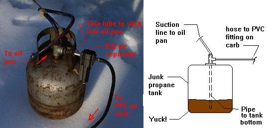 The PCV port on the carb. I also used it to suck the oil out of the filter, to reduce that mess as well.