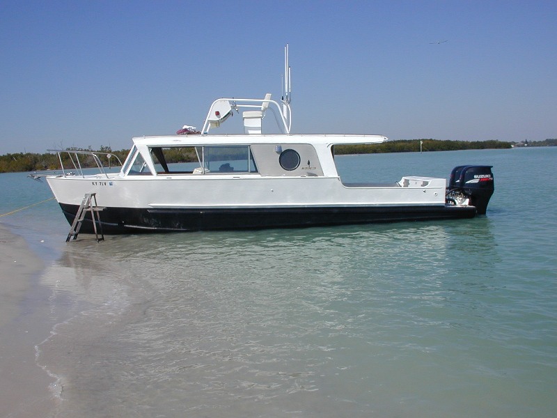 Here are some pictures. One of these is when he first put a single outboard on the boat. The rest are when he upgraded to twins.