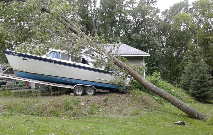 We had a tornado come through on Tuesday night. My 28 express was on the trailer next to my garage and an ash tree 75+ feet tall fell on the boat, bad news is I'm sure the boat is a total loss, good news is the boat prevented my garage and all its contents from being crushed by the tree. I'm sure if it had been a plastic or wooden boat I would be making a homeowner's claim on top of the boat claim. I can't seem to get pics to load, but will try.....