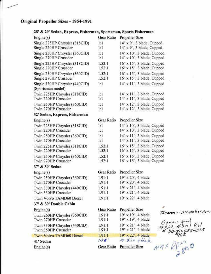 I have 78 37DC with 440's. I purchased as a project and am trying to find the correct prop size. She has 19x19 currently. I haven't had her in the water yet but just checking to see if we are propped correctly.