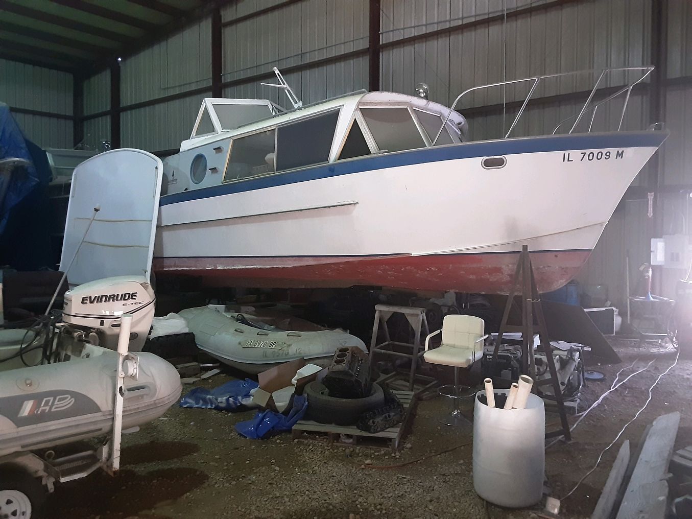 Picked this up from our marina, been sitting in storage for 20ish years. Prior to that best I can tell from previous owners paperwork might have been in use somewhere around mid 90's. I know at one time it had a hard top over the deck area. It has a single gray marine fireball V8 188( which is missing some intake parts). Unsure if it even turns over yet. Intentions are to fully restore, and most probably repower with a modern gm motor.