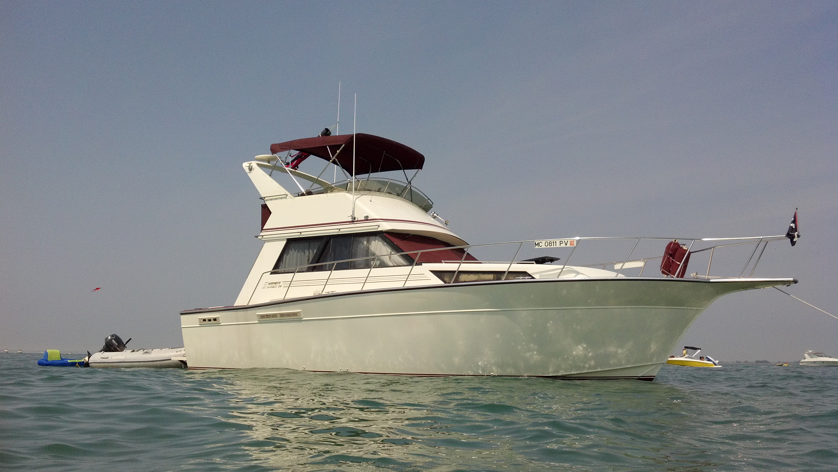 We are the three week old owners of a 1991 34 Marquis Convertible. It spent its first 14 years in Baltimore. A year ago it was transported to Macomb county, Michigan where the new owner refinished the Bridge and then reset it on the hull and began rework, He decided to sell and move out of state so it became SPIES Like Us last month, July 2016. I have a few requests of anyone who can help.
