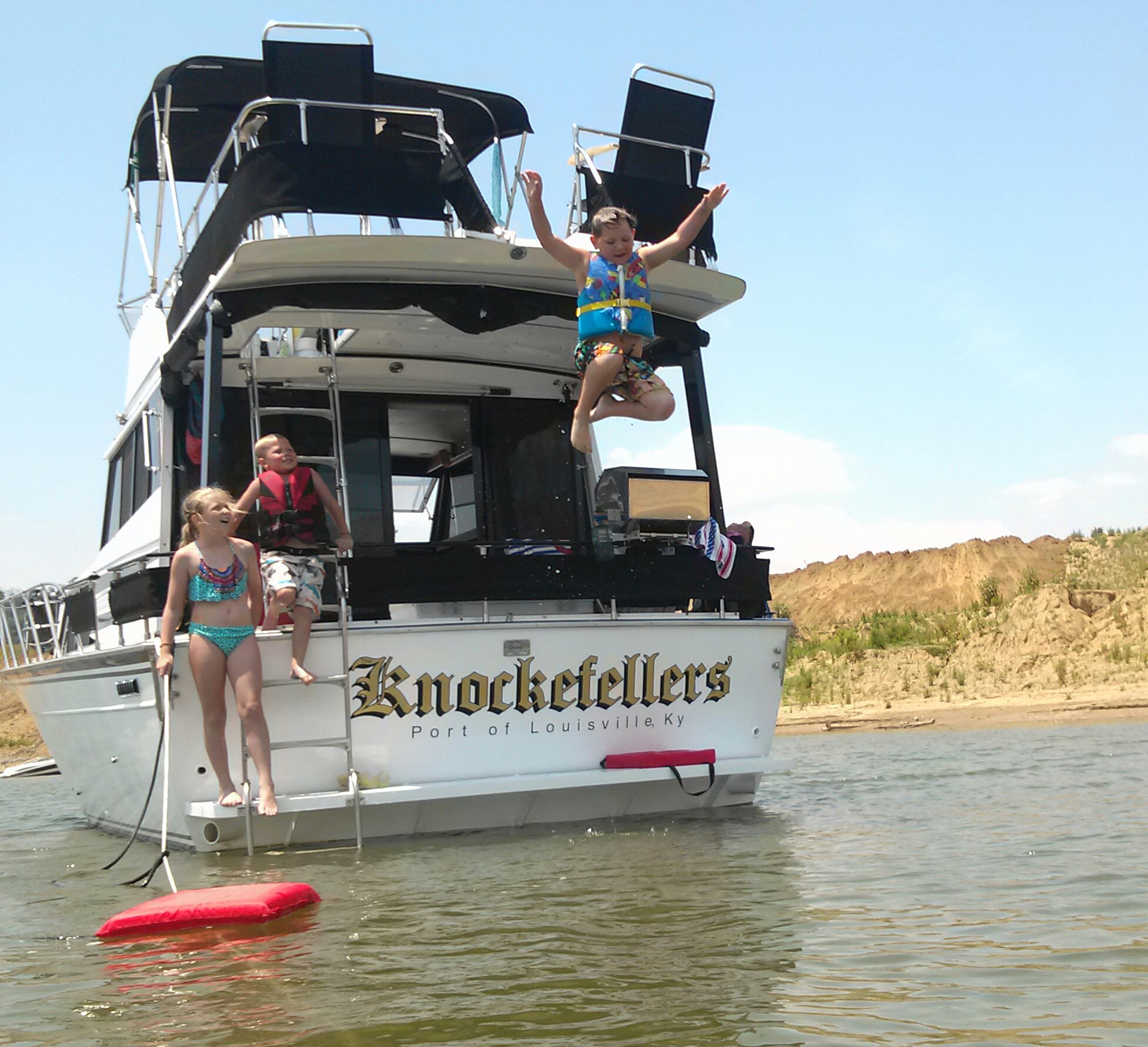 1988 sedan flybridge. Black / White. 318 240 hp Aluminum aft deck hard top. Louisville Ky . Tartans landing. " KNOCKEFELLERS"