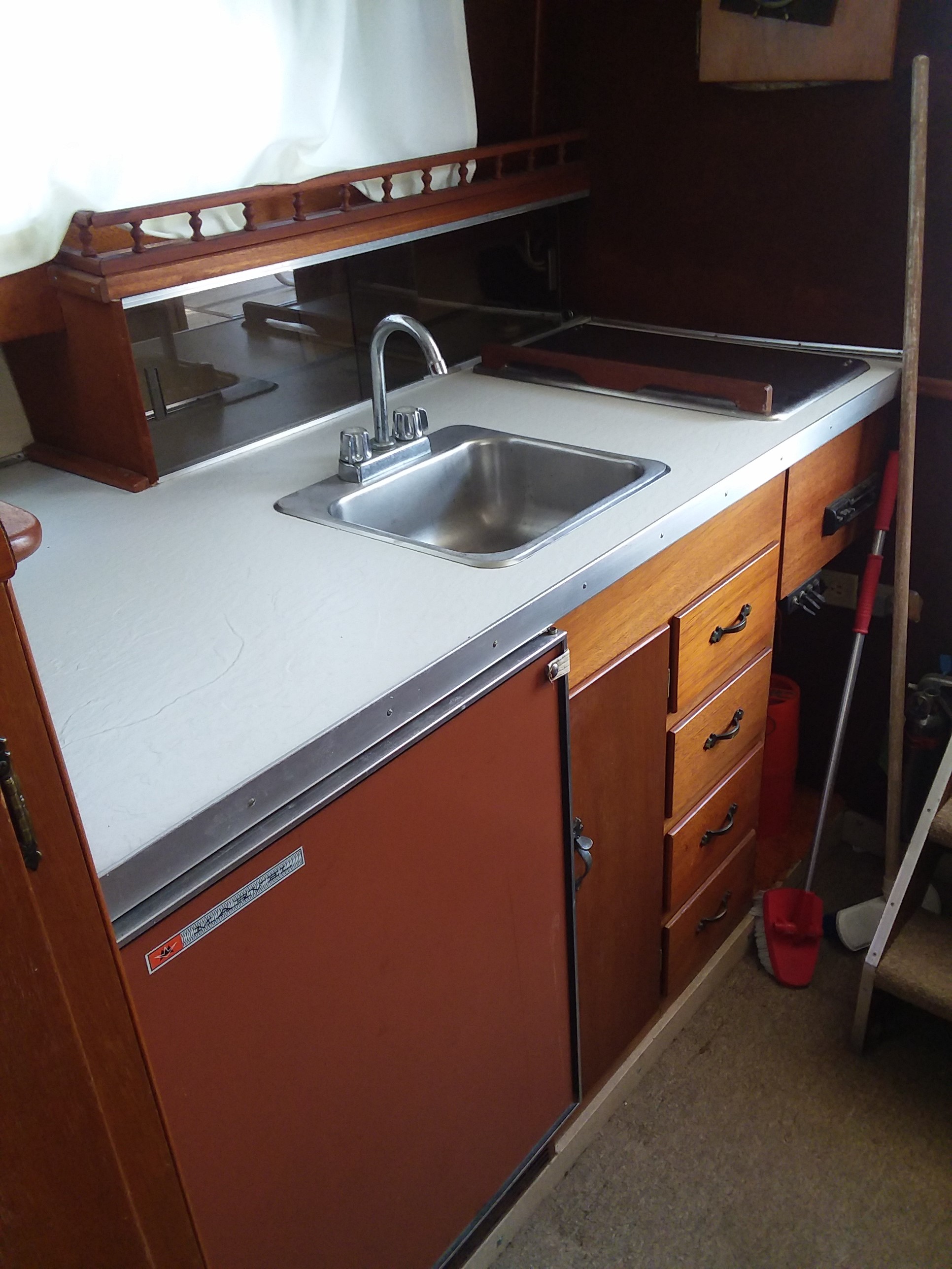 Removed Kenyon 2 burner and replaced with 1/2” starboard cutting board