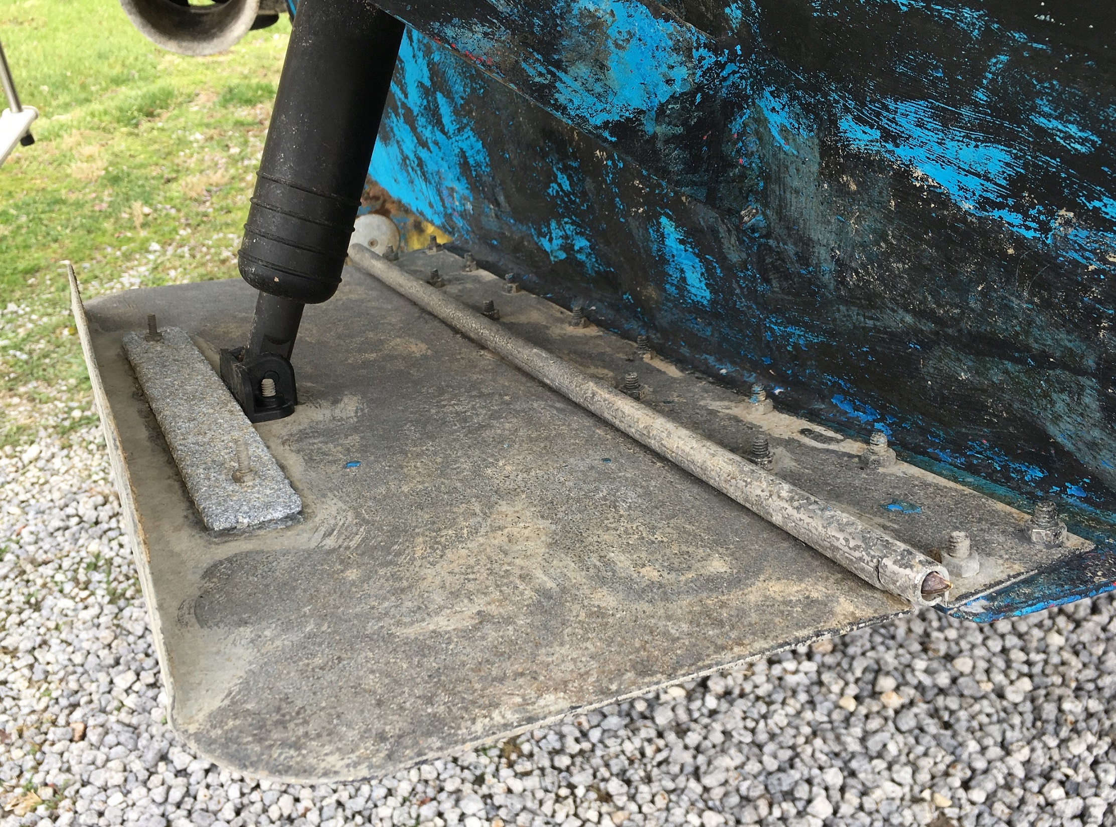 Here is the after power washing. The anode is probably 6-7" long. Do you think that it has life left in it?shade2u2 wrote:The trim tabs have anodes on the top of the tab behind the lip - can't seen them in the picture. I don't have pics showing the anode. I'm removing them this weekend to clean up and re-install. They still look pretty solid.SunbeamIV wrote:John,