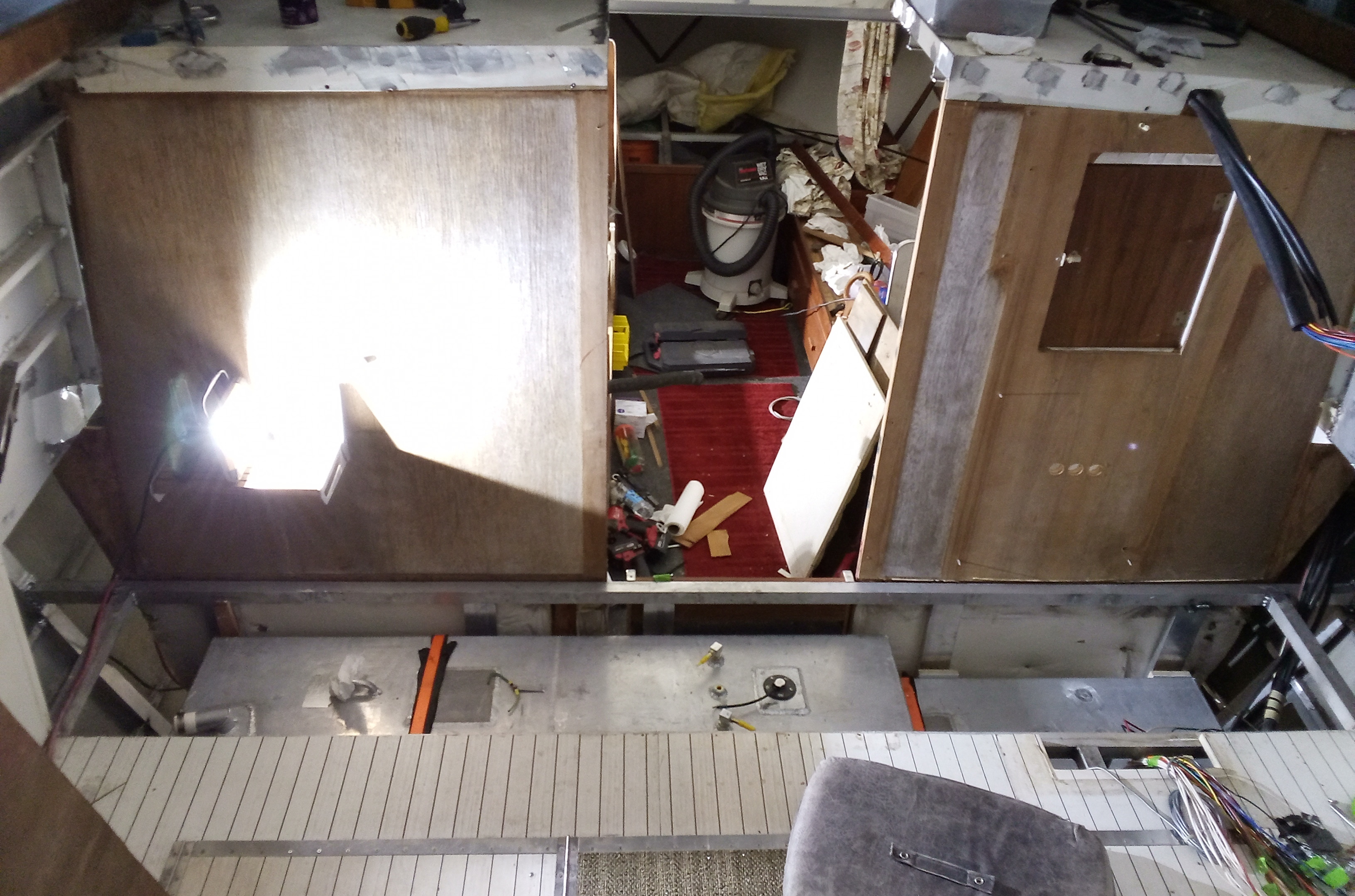 I had moved my helm forward 18 inches, which shrunk the cabin the same amount. I was able to get an additional 130 gallons of fuel onboard. Now I hold 280 gallons total. I still have some fit and finish to do, but over all it was worth it in my mind. We travel to a National Park that is 70 miles dock to dock, 60 miles of open Lake Superior. The gas out there was $8.62 a gallon last summer. So now I can make a round trip with plenty of reserves and not have to buy fuel over there.