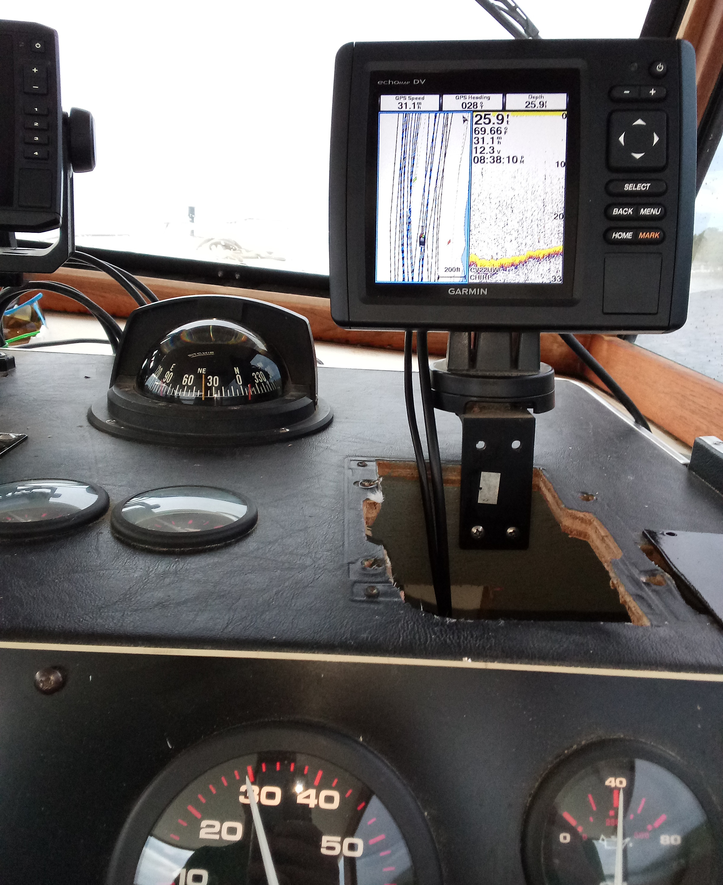 Don't mind the big hole in top of the dash, it was a temp spot to mount the chartplotter while doing the water test. It has been covered.