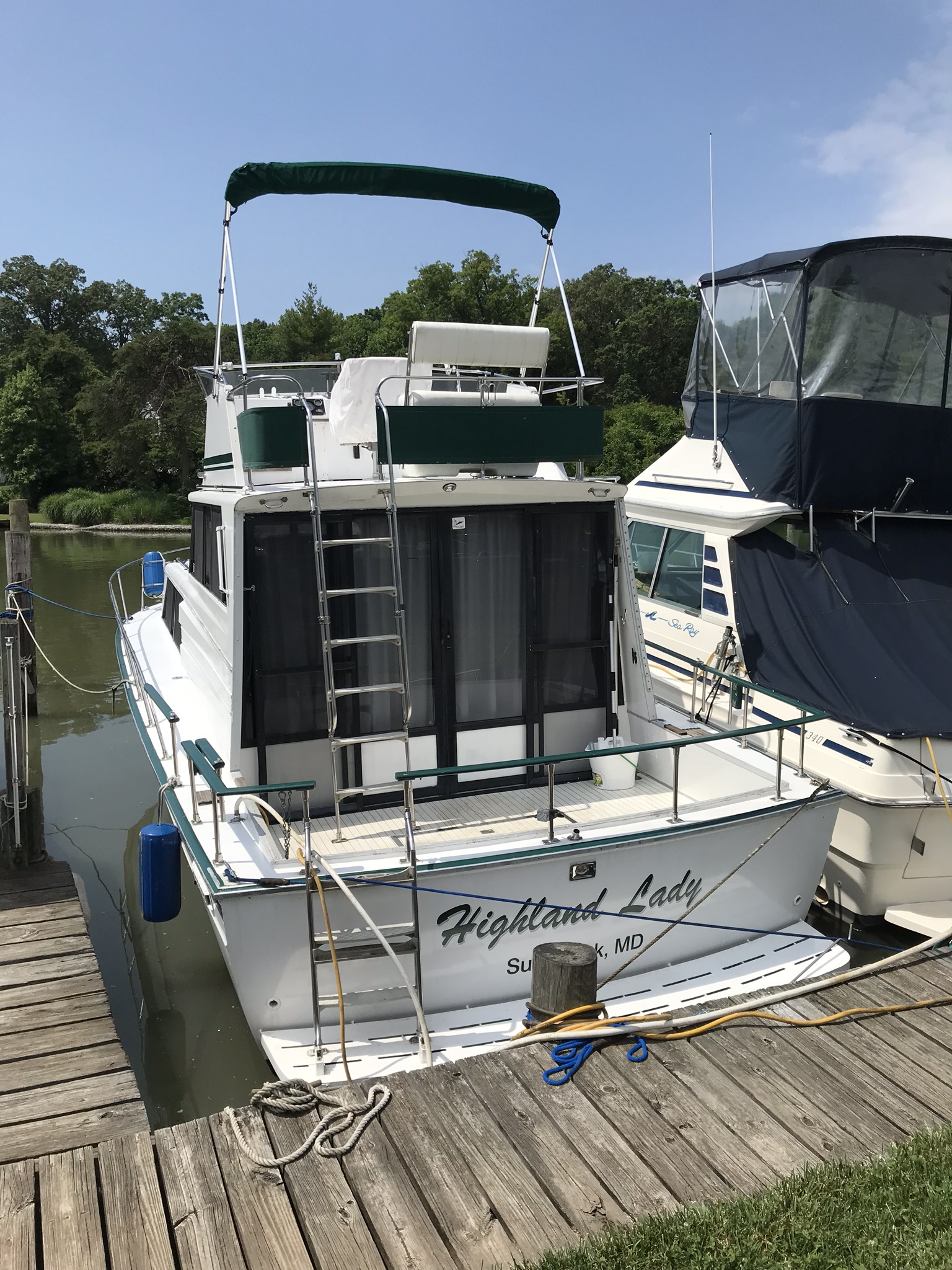I am the owner of the “Highland Lady”. A 1988 32’ Flybridge Sedan docked in Essex, MD. Just outside Baltimore. My parents bought it new in 1988 and it’s been at the same Marina it’s entire life.