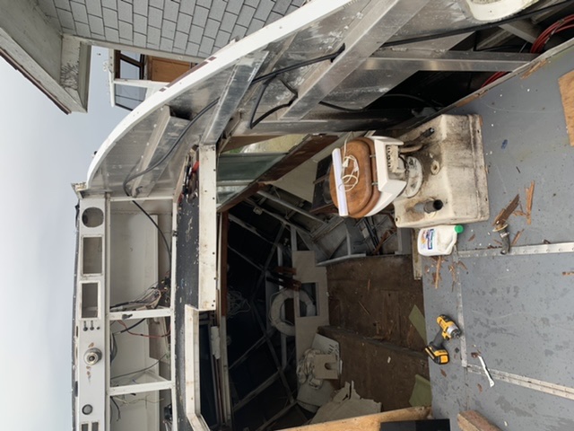 All, First time member officially not just a viewer. Prefer the forums layout vs facebook group honestly. I have dealt already with some marinette owners already in my project. We'll here it goes decided to turn this boat into a center console with outboard power and started gutting the hull down to the bare structure. Im trying to figure out the best way to list what i have left to salvage that owners could use. If i'm allowed ill keep this thread updated with photos as demo progresses. I'm close to pulling off the top and wanted to post if there is any interest in this item as a man cave or someone make it into a bar. I plan i cutting it across all window post at the gunwale.