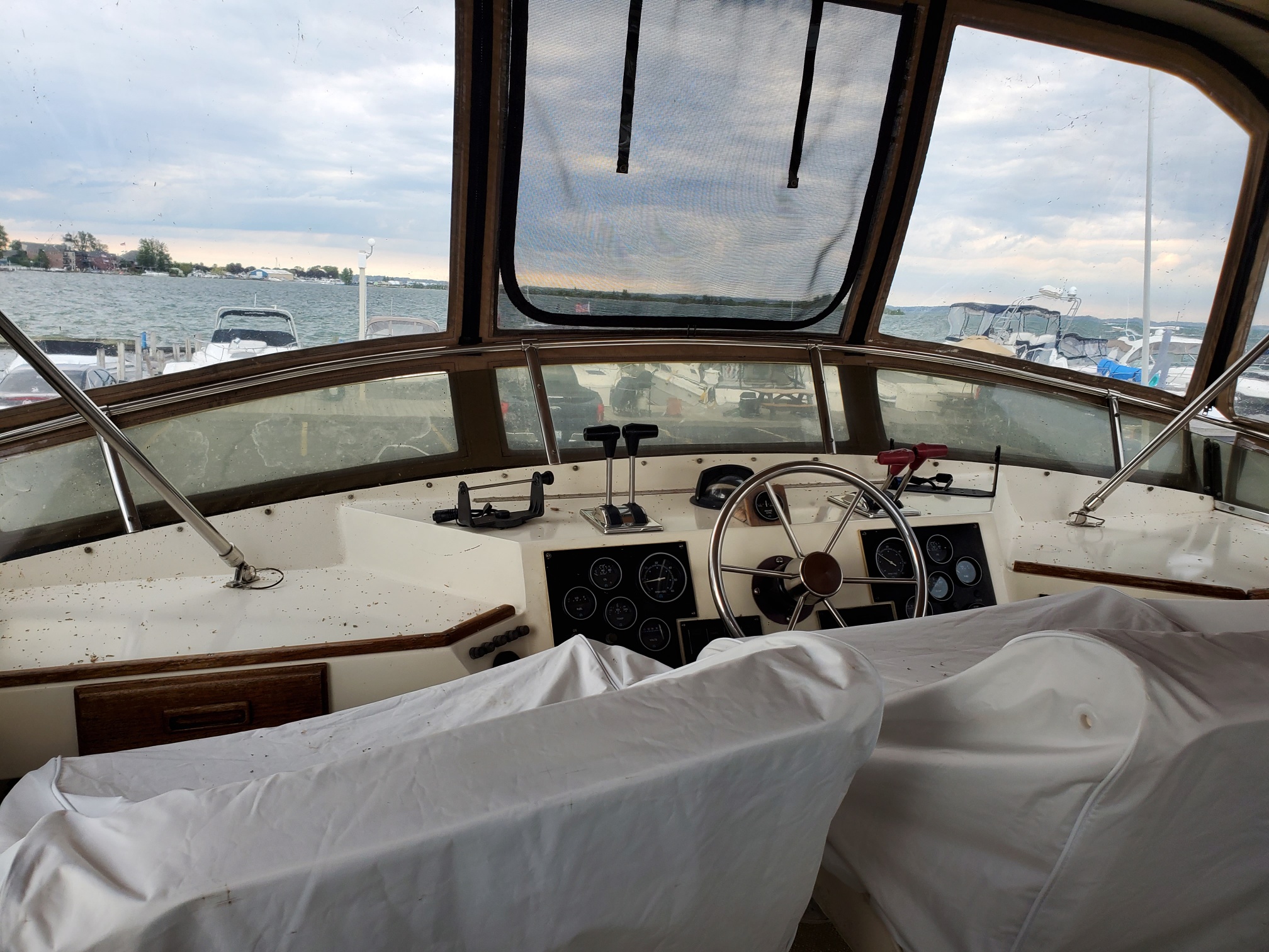 1991 Marinette 34 with twin 454 Crusaders, stand-up shower, new canvas with full back enclosure and newer vinyl seating. $45,000.00