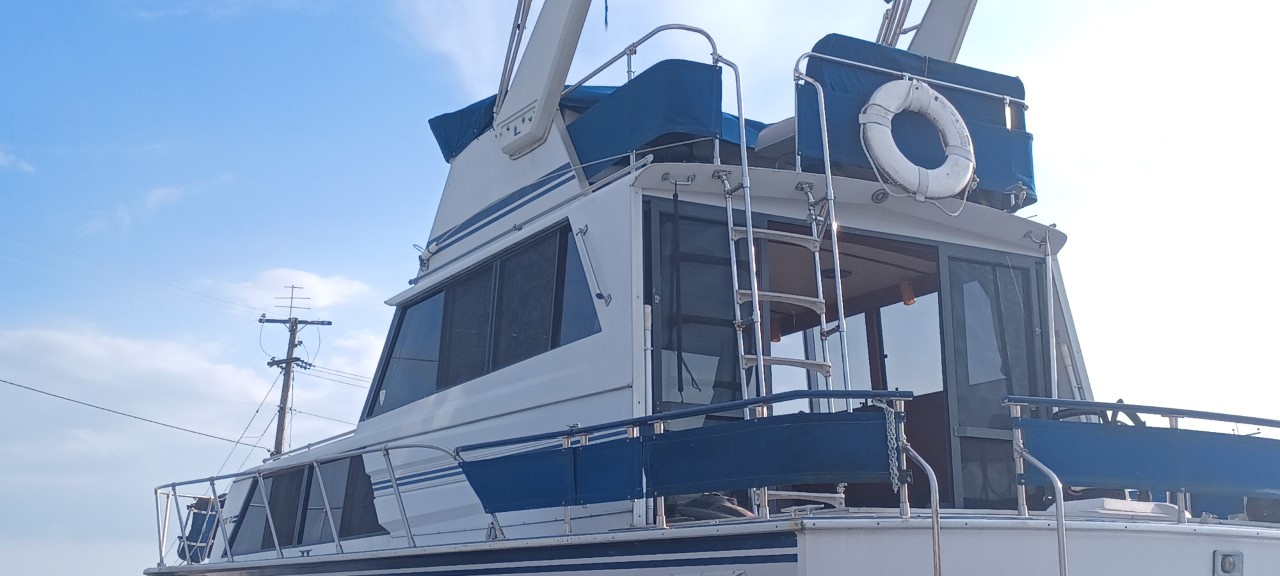 Unfortunately, during this time one motor became seized up even though I would go every couple months and crank the motors. Turned out to be a frozen valve. I had planned on having the existing motor repaired but I cant take the boat with me at this point. The price reflects the motor on what can be a truly great one of 7 made B floor plan 32' marinette boats